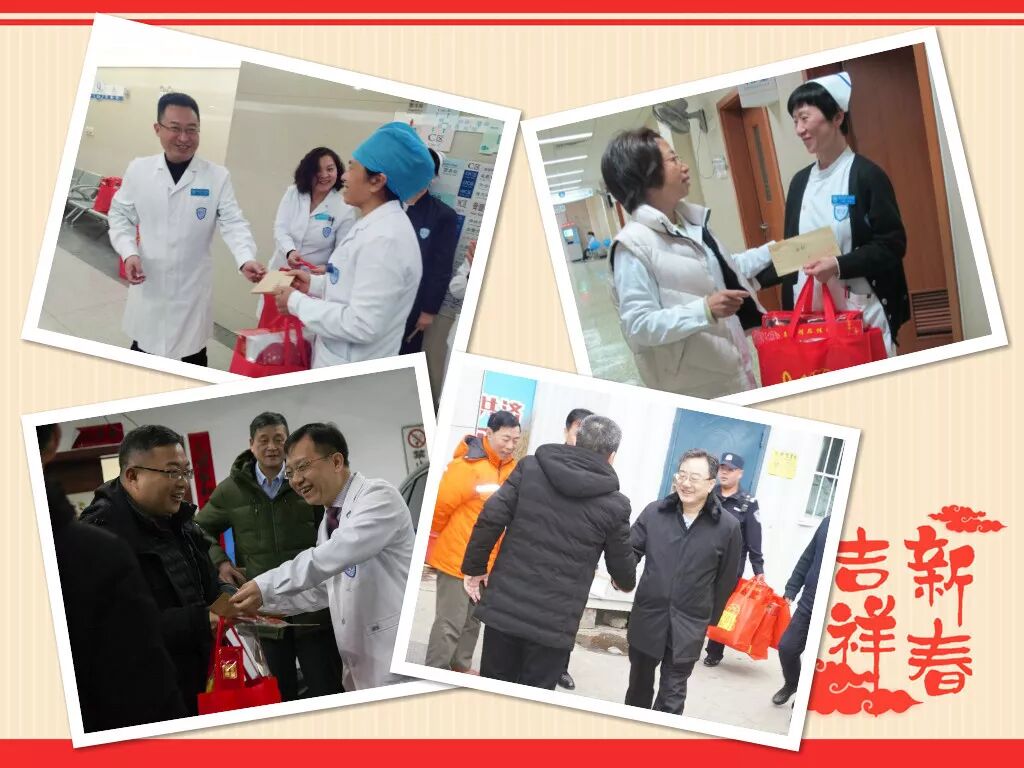 2019年2月3日,北京大学人民医院院长姜保国、党委书记赵越、副院长张俊、刘玉兰、李澍、王天兵,党委副书记陈红松、郭静竹,院长助理洪楠等院领导,以及白塔寺院区和海淀病区负责人,深入门诊、病房一线,走遍医院每一个角落,为奋战在一线的医院职工送上暖暖的新春问候和亲切祝福。